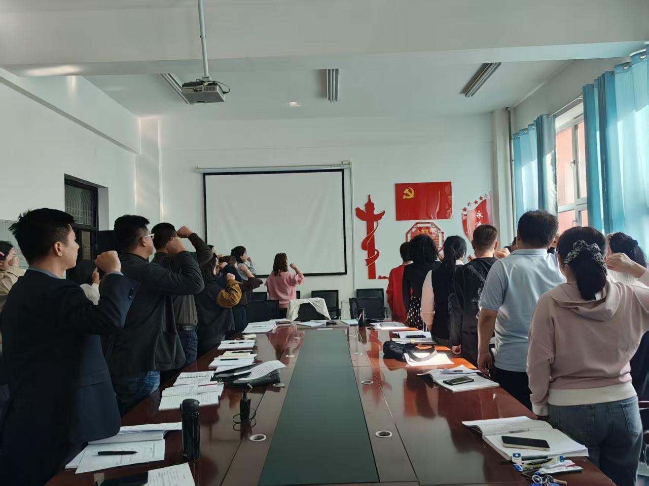 活动尾声,道路桥梁工程学院党总支书记樊梦兵带领全体党员面向党旗庄严宣誓,铿锵誓言彰显了党员的坚定信念。樊梦兵同志在总结中讲到,全体党员干部要将伟大抗战精神融入立德树人全过程,以“逢山开路、遇水架桥”的魄力落实“为党育人、为国育才”使命,以实干实绩推动学院高质量发展。
