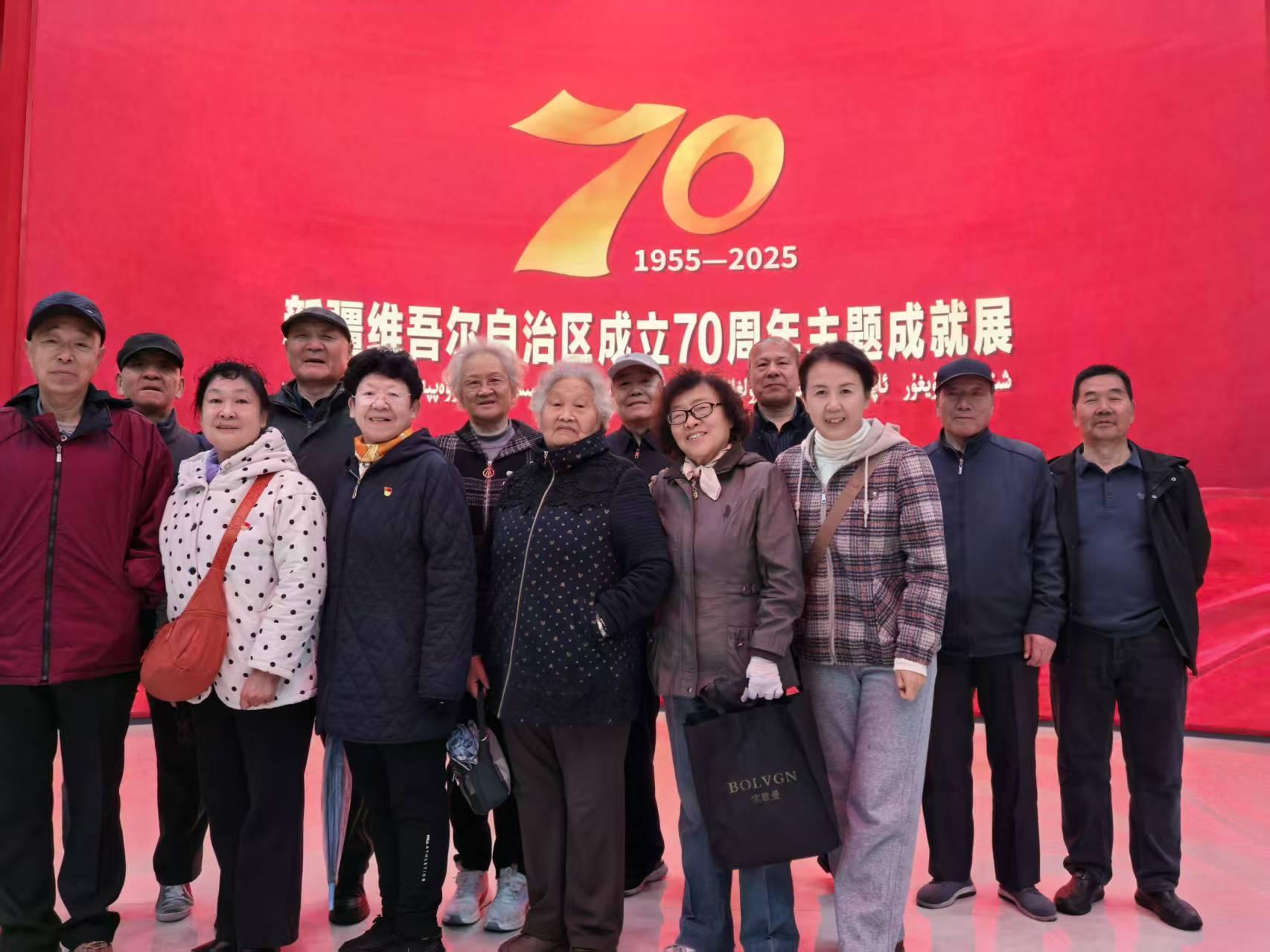 10月15日,学校工会、离退休党总支组织老党员代表赴乌鲁木齐文化中心展览馆,共同参观“新疆维吾尔自治区成立70周年主题成就展”,以沉浸式观展的方式开展“不忘初心、牢记使命”主题党日活动,在光影流转间重温奋斗岁月,在时代变迁中感悟初心使命。