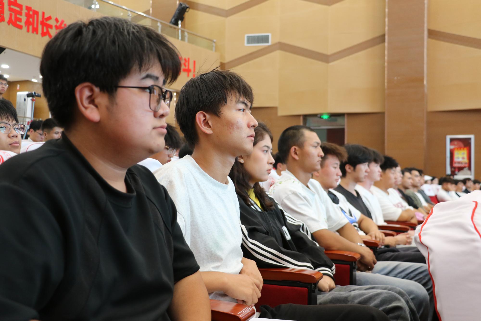 “当‘东风-5C’洲际导弹、歼-35A隐身战机驶过天安门广场,我们看到的不仅是国之重器,更是无数青年工程师的奋斗身影。”陈建壮以九三阅兵式为切入点,向学生们阐释新时代是技能人才大显身手的时代。他从百年未有之大变局加速演进讲起,剖析了第四次工业革命对全球产生的深远影响,引导学生思考个人成长与国家发展之间的紧密联系。他带领学生回顾学校的发展历程与文化传承,强调学校作为自治区唯一培养交通运输全领域技术技能人才的职业本科院校,正肩负着为中国式现代化输送“交通尖兵”的使命,鼓励学生们要在“做中学、学中创”中成长为懂技术、会创新、肯奉献的交通工匠。