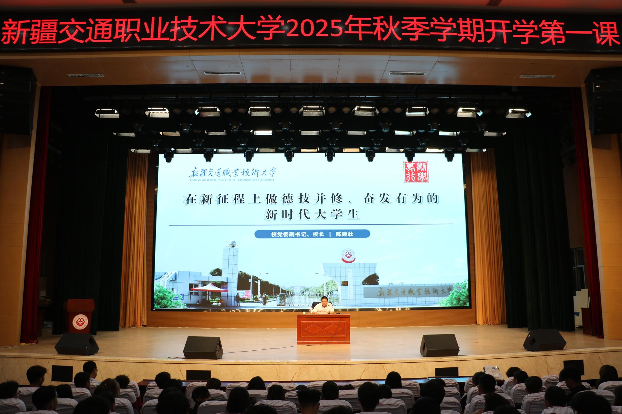 9月9日,KY开元集团官网2025年秋季学期“开学第一课”在学校礼堂举行。校长陈建壮以“在新征程上做德技并修、奋发有为的新时代大学生”为题,为全体学生上了生动一课,勉励学生将个人理想融入国家交通事业发展,在天山脚下书写技能报国的青春华章。