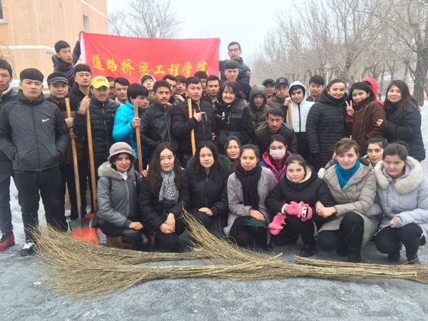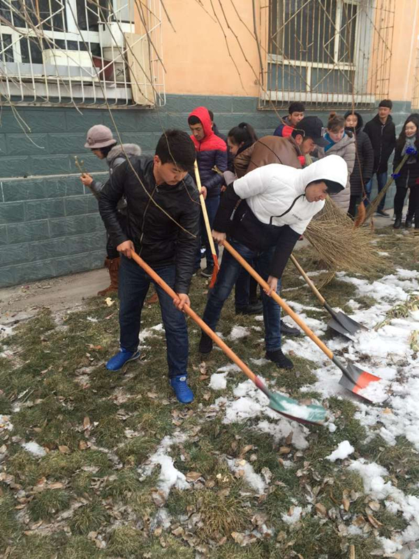 3月3日下午道路桥梁工程分院辅导员吾尔古丽·库尔班老师围绕“学雷锋、做好事”以“我为稳定做贡献”为主题展开座谈演讲,同学们认真聆听、并详实的做了笔记。3月5日同学们到学院家属区进行卫生清洁,虽然天气很冷,但都干得满头大汗,火热的劳动场景吸引了户外的民众,大家相继投来赞美的目光。