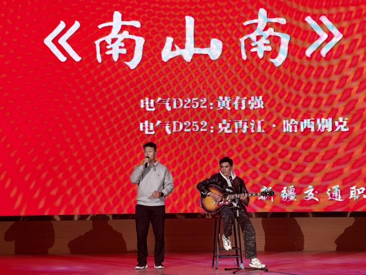 “青春奋斗”聚焦青年担当,《有我》以激昂曲调唱出新时代青年的使命与誓言;朗诵《青春筑路,逐梦天山》,用铿锵话语讲述天山脚下青年筑路的奋斗故事,诠释“精技报国”的学院精神;校艺术团的《街舞串烧》,以动感律动展现青春的热血与活力;《老男孩》,则用熟悉旋律唤起对梦想的执着坚守。“心怀感恩”篇章温情满满,《萱草花》以温柔歌声诠释“母亲花”的牵挂,传递对亲情的感恩;《时间都去哪了》则用真挚嗓音唤起对父母辛劳的体谅,引发全场情感共鸣。