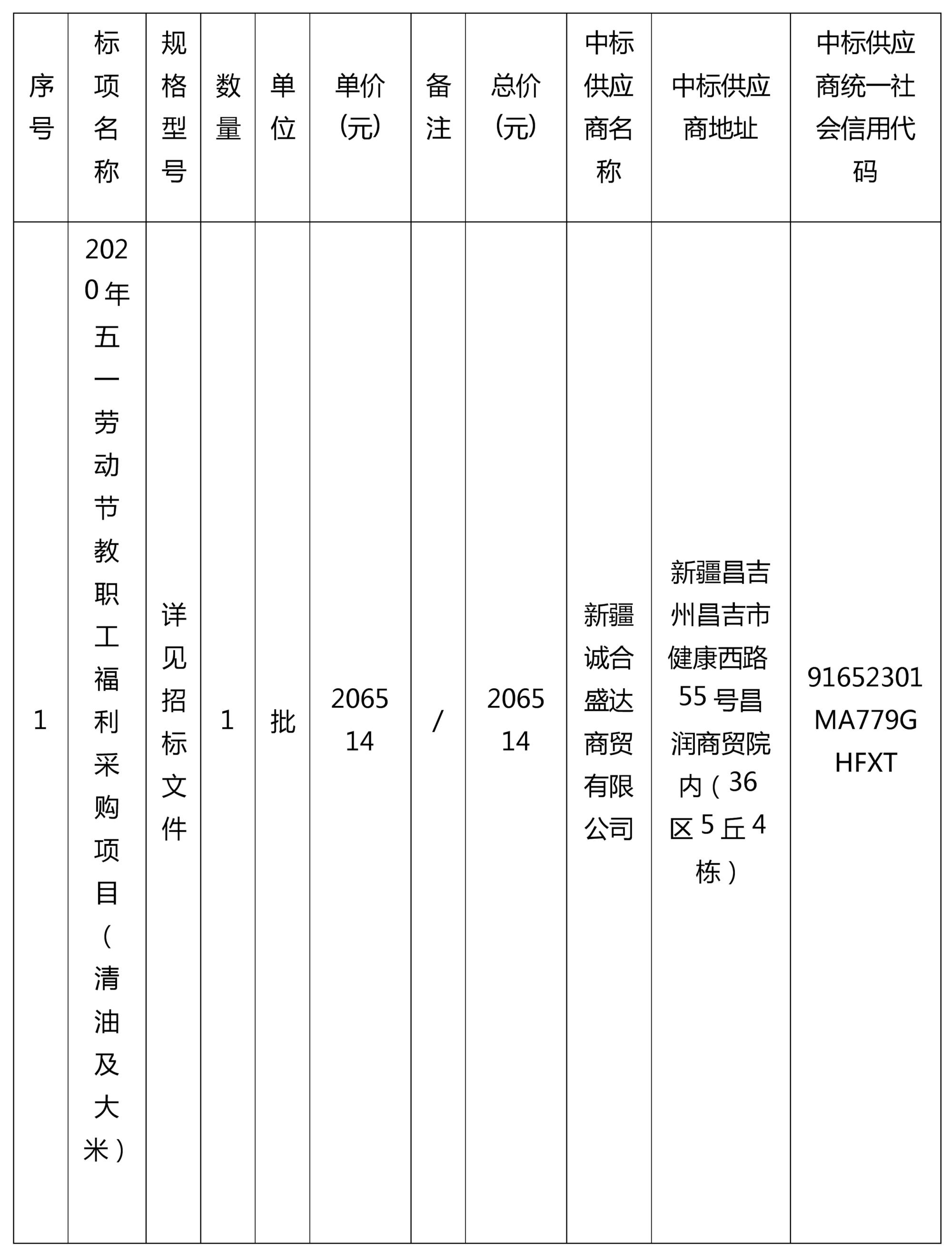 二、采购项目名称:2020年五一劳动节教职工福利采购项目