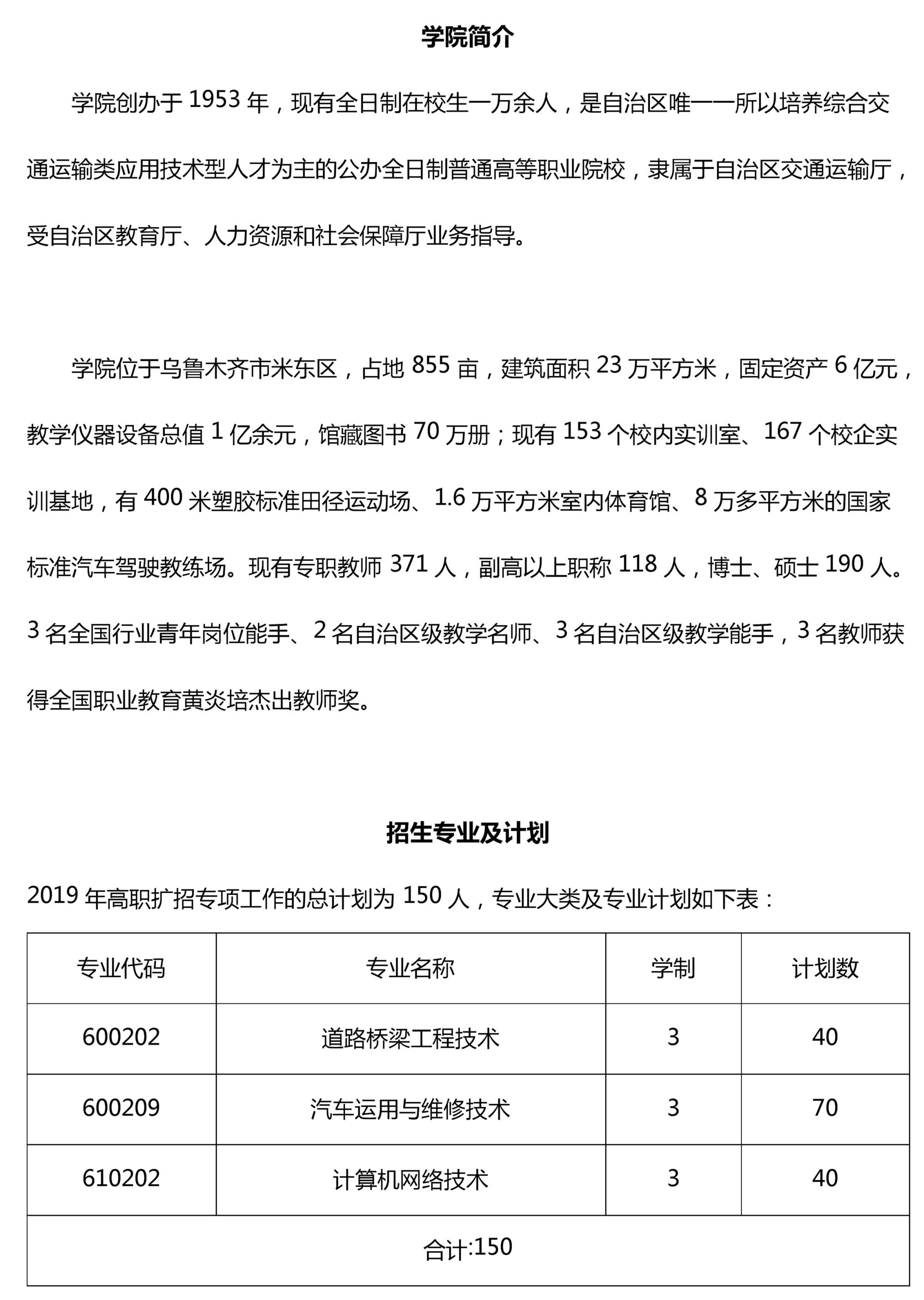 新疆交通职业技术学院2019年高职扩招专项工作招生简章
