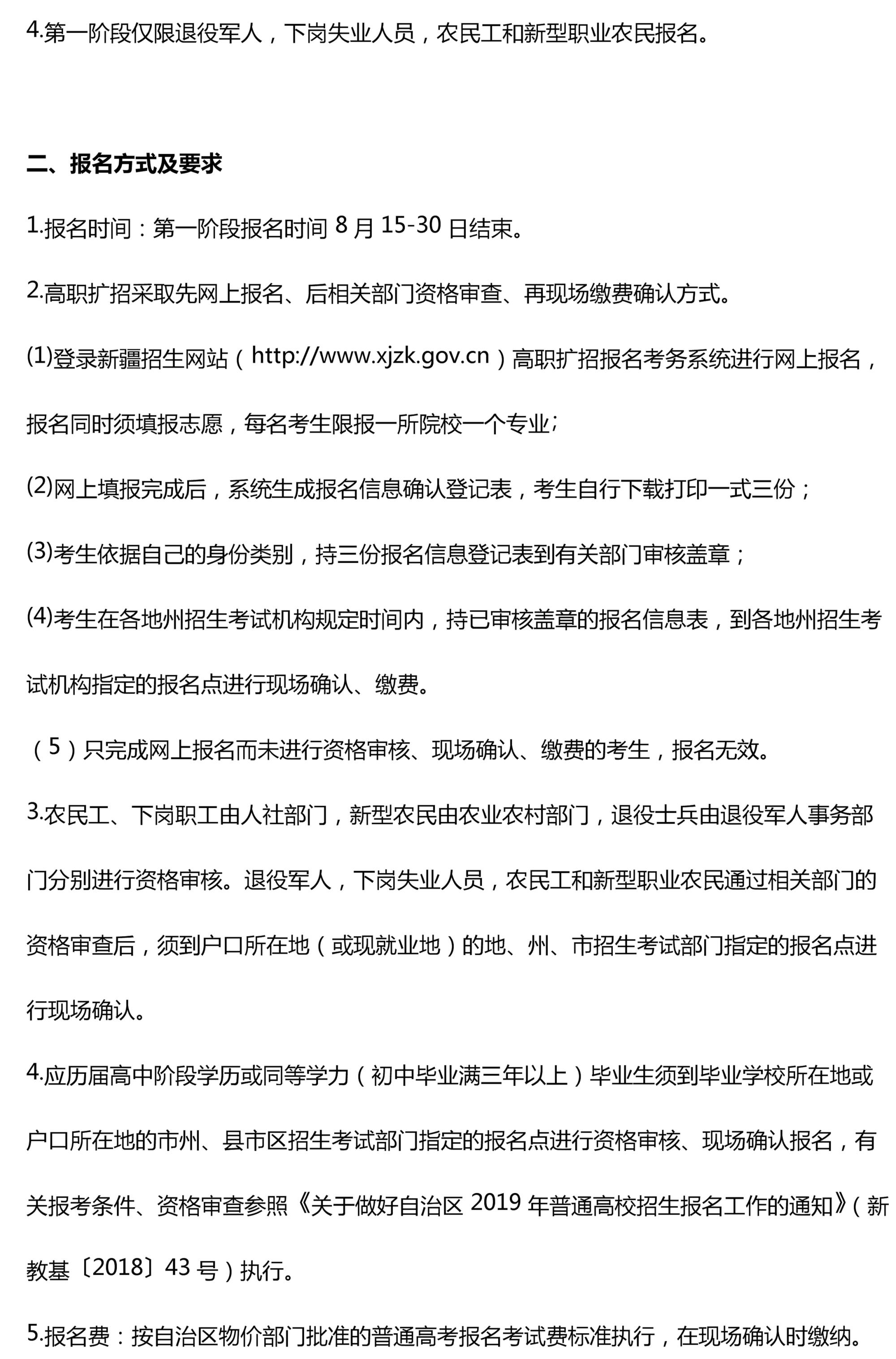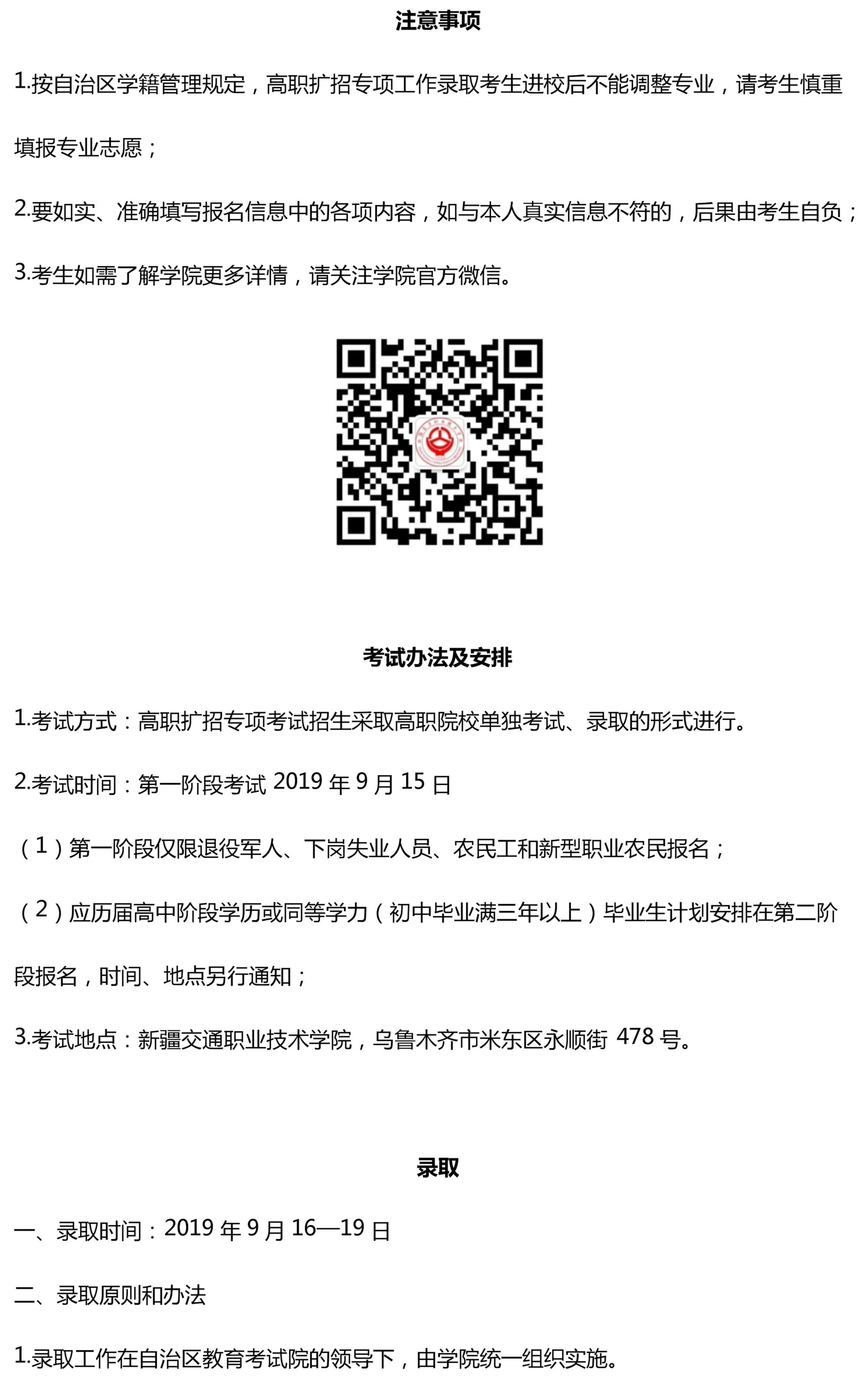 新疆交通职业技术学院2019年高职扩招专项工作第二阶段招生简章