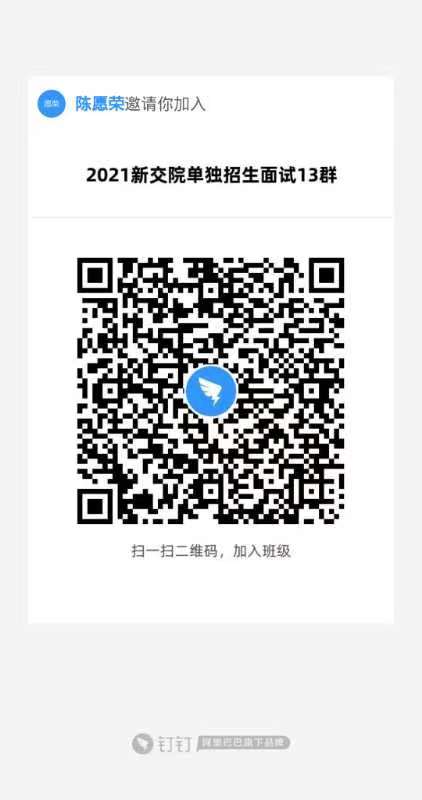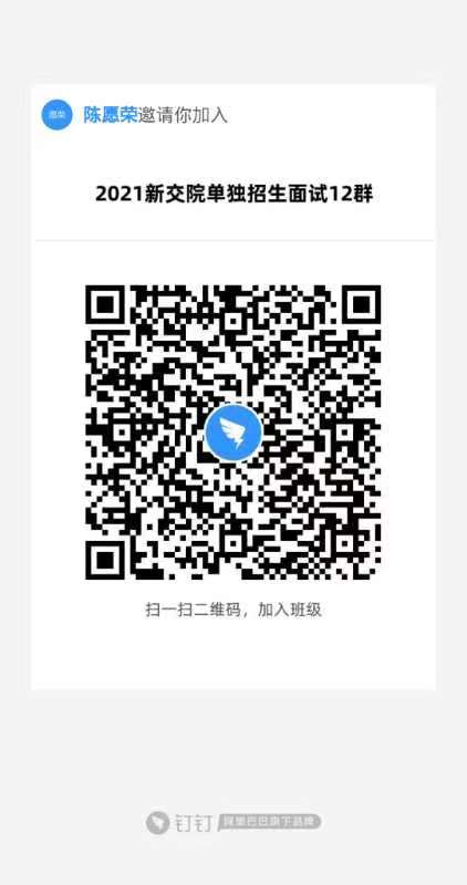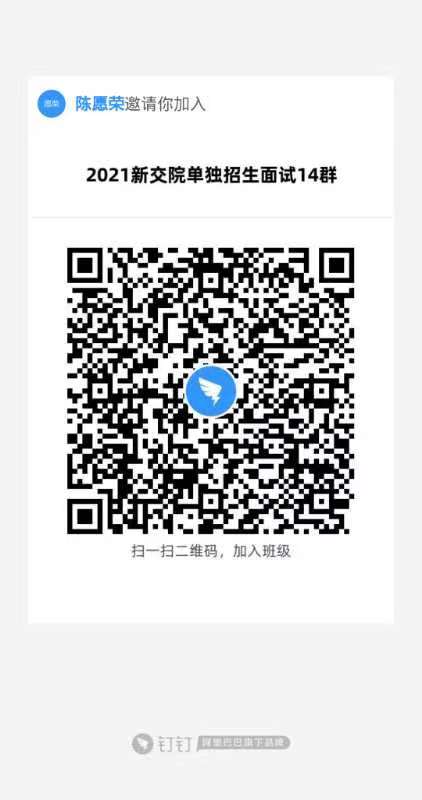 正式面试时间为2021年4月14日,面试采取线上答辩形式。考生使用本人手机或者电脑端下载钉钉软件,用手机号注册登录,并根据附件进入相对应的钉钉群。2021年4月13日安排模拟面试,相关事宜请关注群内消息。2021年4月13日和14日考生务必保持手机网络信号畅通,全天登录钉钉用户,随时保持钉钉用户开启模式,在模拟面试前仍未进入相应钉钉群的,视为自动放弃本次面试机会。