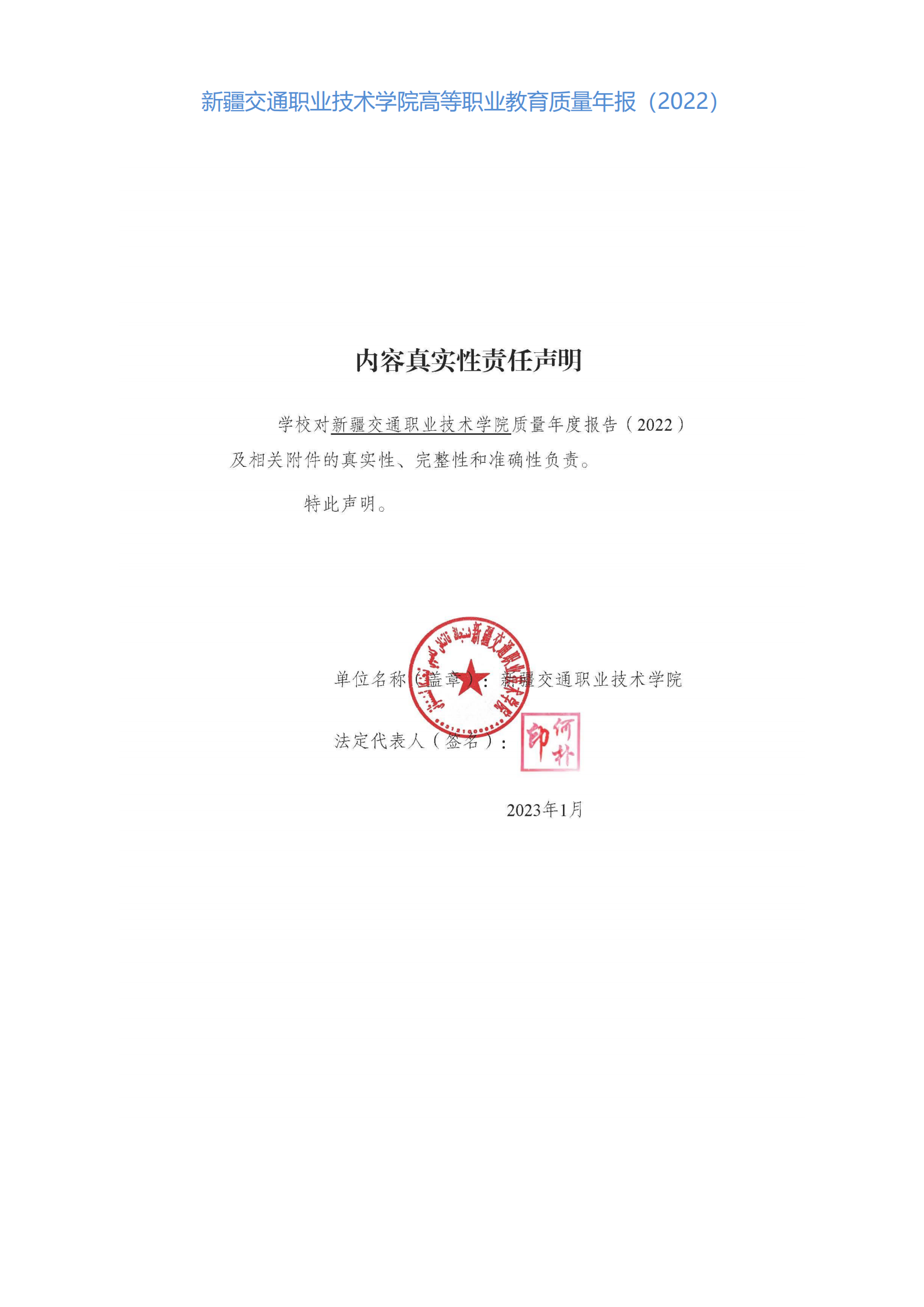 新疆交通职业技术学院高等职业教育质量年度报告(2022)
